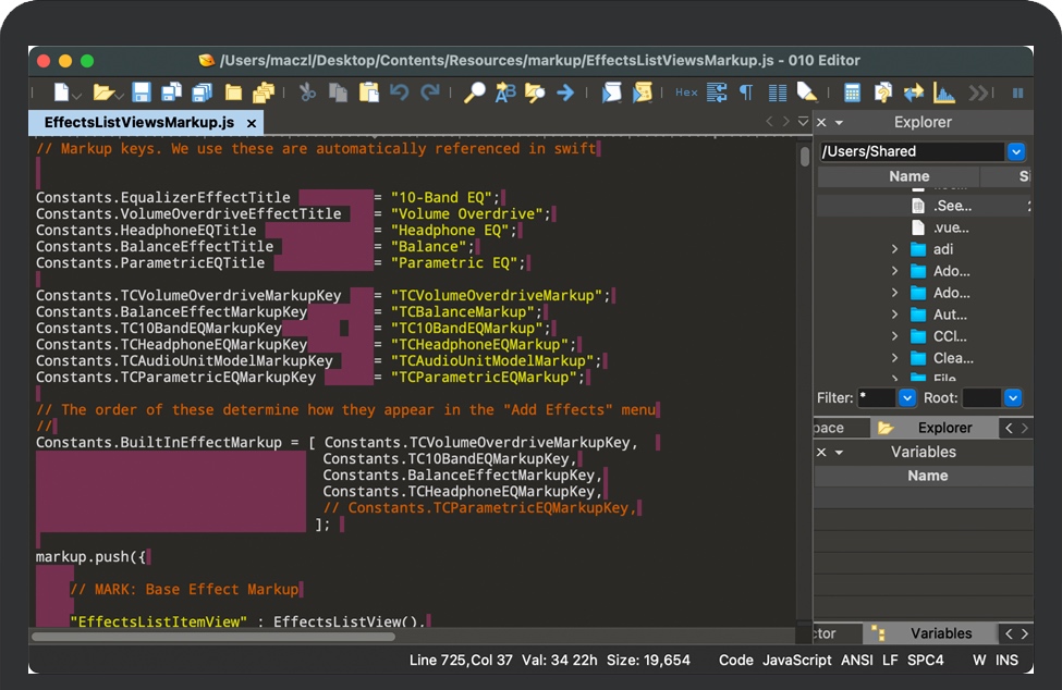 010 Editor for Mac 旨在成为能够编辑和解析任何二进制文件的专业文本编辑器和十六进制编辑器。文件在中央区域显示为一系列文本字符或十六进制字节。010 Editor 最强大的功能是能够将二进制文件解析为可以理解的数据结构。解析由二进制模板完成,显示在右上角,运行模板的结果显示在十六进制编辑器下方的模板结果面板中。