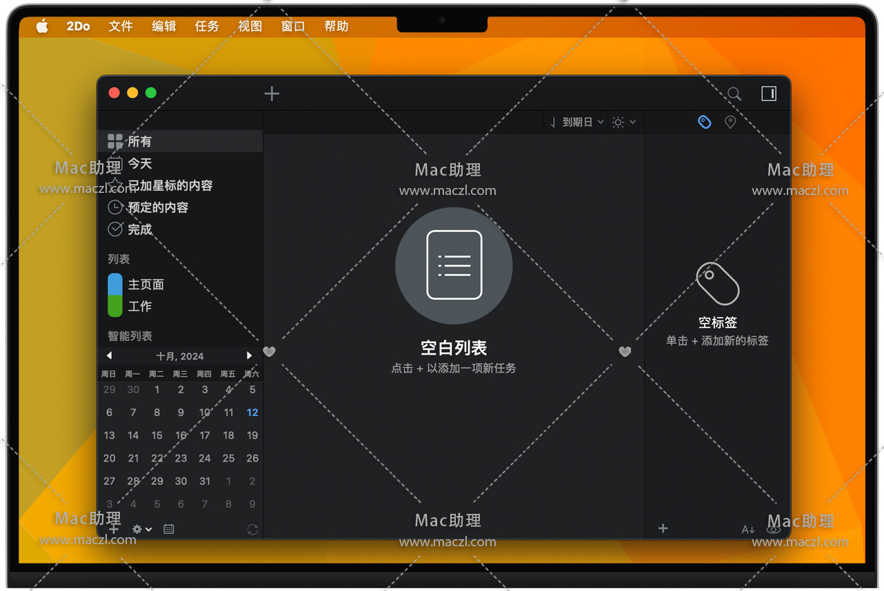 2Do for Mac 是一款高度灵活的任务管理工具。2Do这款多功能Mac任务管理器可让您从一系列工具和选项中进行挑选,使用最适合您的工作流程的工具和选项,而将其他工具和选项放在一边。它支持多个项目、子任务和提醒的调度,让您专注于个别日子或缩小到更广阔的视野。使用2Do,即使是复杂的数月工作也可以分解为简单的任务并融入您的工作流程。将 2Do 包含在您的时间管理套件中,您将迈出最终使您的日程安排自然、轻松和安全的第一步。