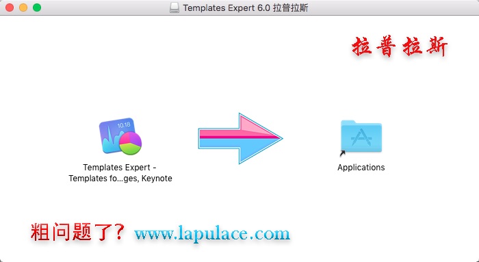 1、软件下载完成后,打开下载好的软件包如上图,拖动软件【Templates Expert - Templates for Pages, Keynote】 到 Applications 进行安装。