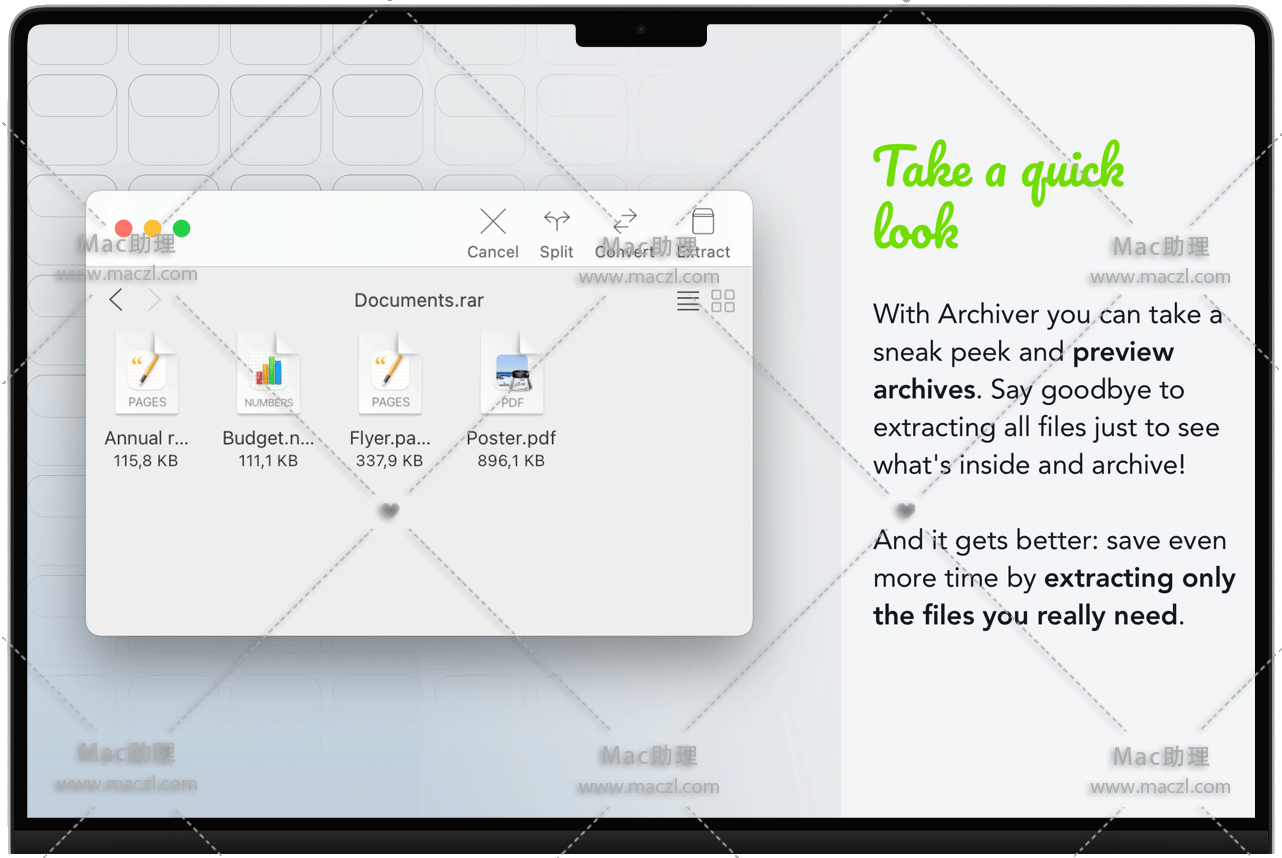 使用Archiver,您可以偷看并预览档案。告别提取所有文件只是为了查看里面的内容并存档!