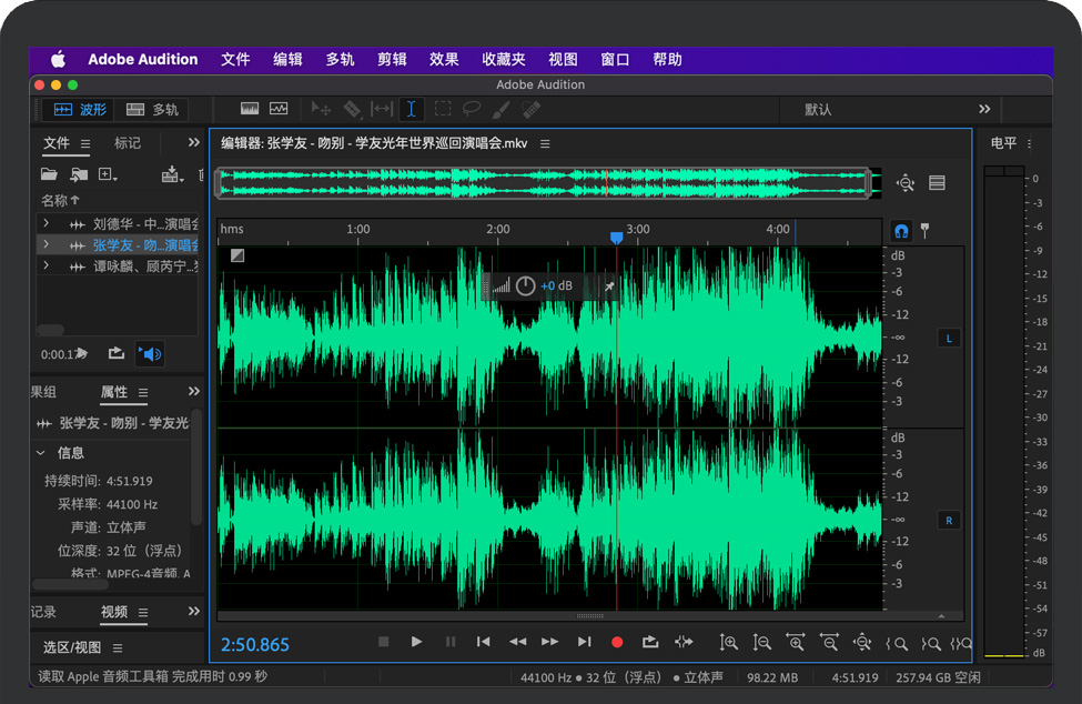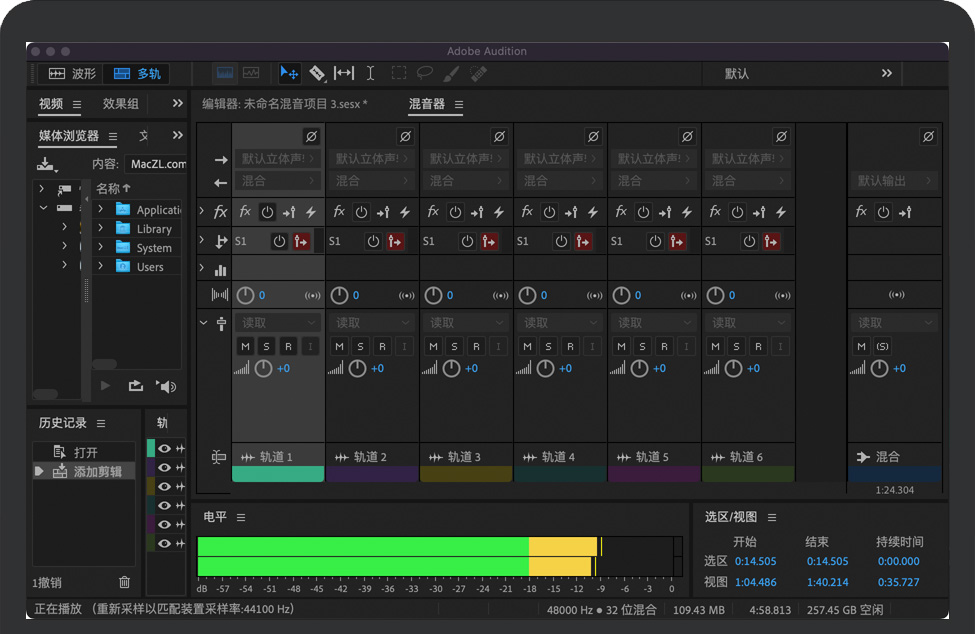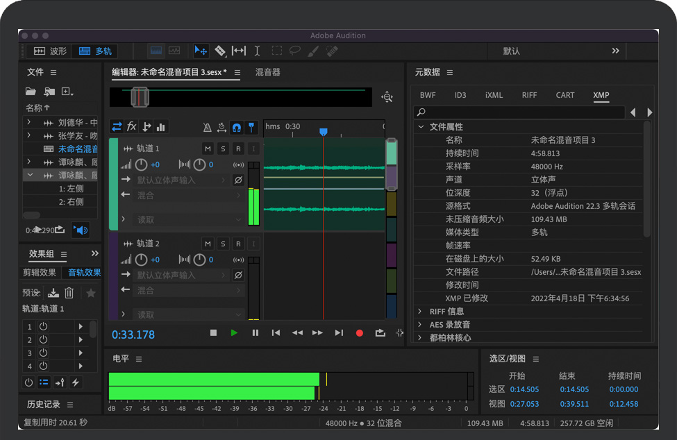 Adobe Audition 2022 for Mac 是一款完善的工具集,其中包含用于创建、混合、编辑和复原音频内容的多轨、波形和光谱显示功能。这一强大的音频工作站旨在加快视频制作工作流程和音频修整的速度,并且还提供带有纯净声音的精美混音效果。Adobe Audition是混合和掌握电影、电视、音乐和播客音频内容的完美软件。稍加编辑,您就可以调高音量并掌握完美的声音。
