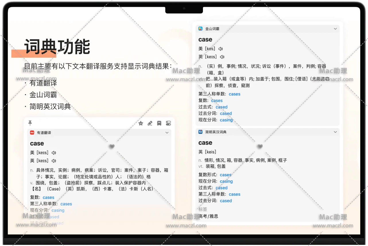 - 划词翻译:选中需要翻译的文本,按下划词翻译快捷键(默认 ⌥ + D)即可翻译