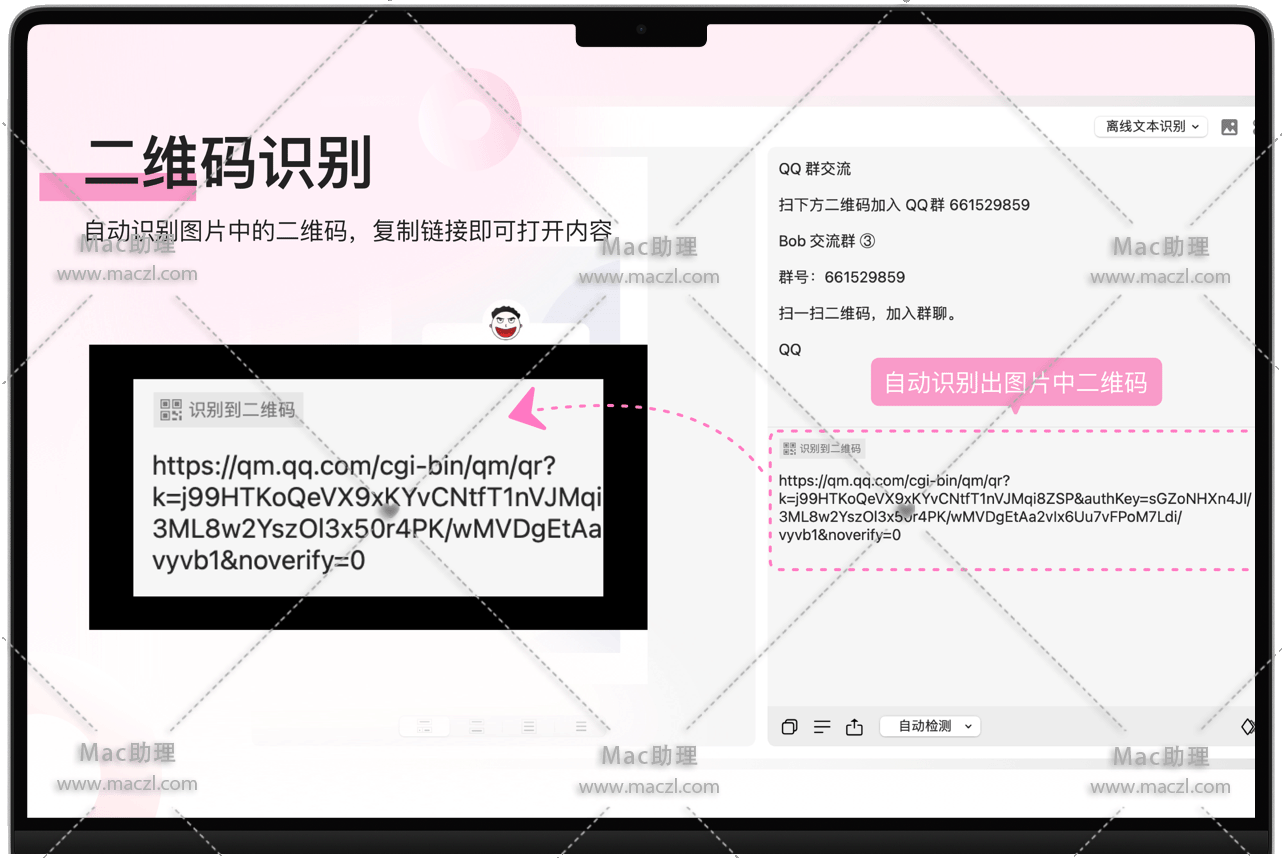 - 二维码识别:自动识别图片中的二维码
