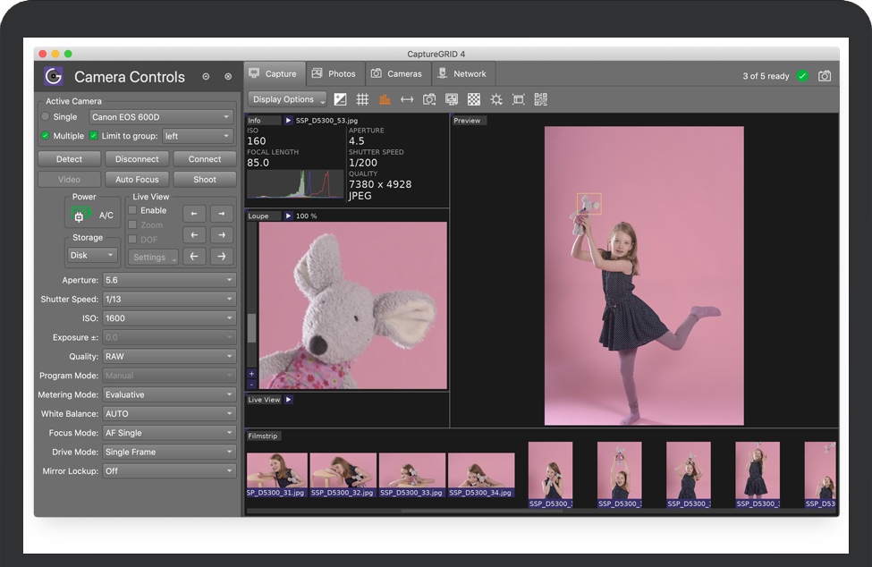 CaptureGRID4 是一款数字摄影工作流程应用程序,可用于栓系式拍摄,远程拍摄和高级相机控制。