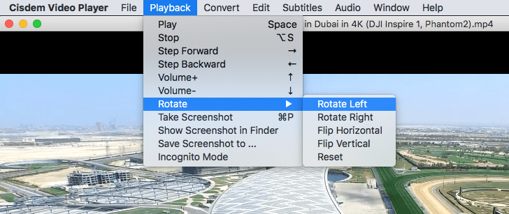 旋转:您可以通过单击菜单栏上的播放 → 旋转,将播放的视频旋转到不同的角度,然后在下拉框中选择合适的角度。