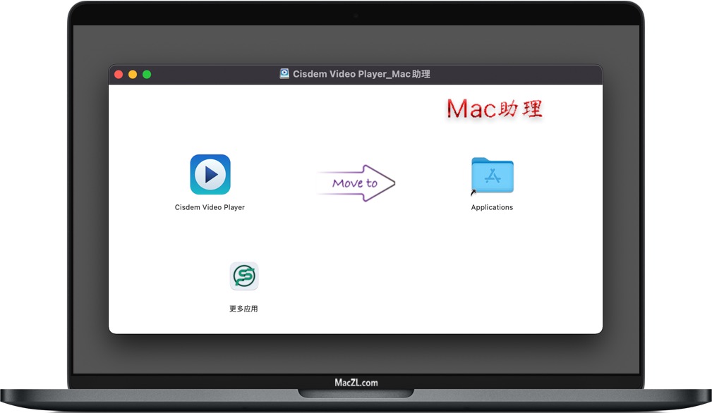 Cisdem下载完成后,打开软件包如上图,请参照 Cisdem Video Player 苹果视频播放器安装使用指南 进行安装即可。
