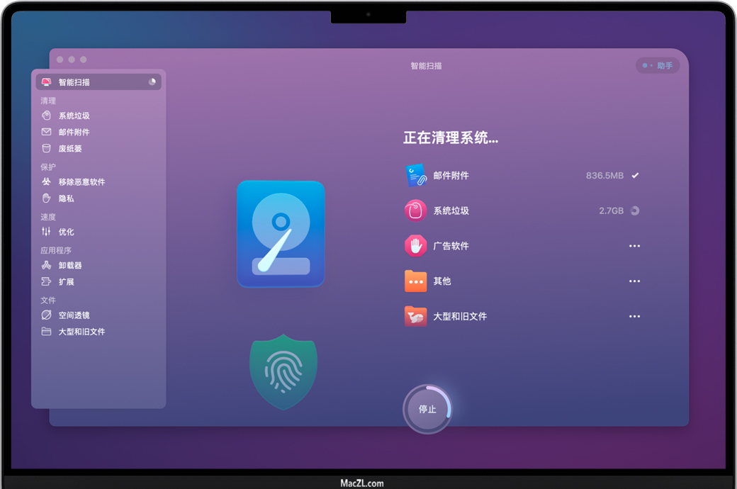 CleanMyMac X内置的安全数据库会从重要文件中分辨垃圾。它知道您的macOS的方式,并且永远不会在没有询问的情况下删除任何内容。CleanMyMac X的智能助手将指导您完成定期的磁盘清理,甚至向您展示还有什么需要清理的。就好像它拥有安全清洁方面的博士学位一样。
