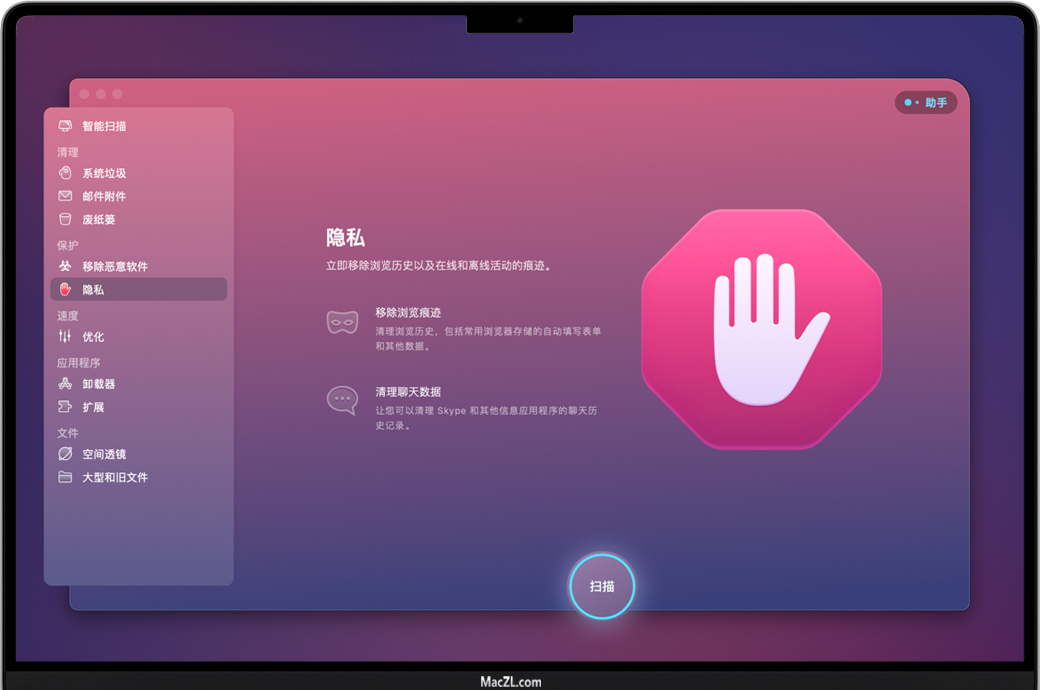 Mac 上有病毒吗?不在你的,如果你尝试用CleanMyMac X清洁Mac。它可以抵御恶意软件、广告软件、勒索软件以及所有这些特定于 macOS 的软件。发现问题后,应用会立即将其删除。我们会定期更新我们的恶意软件数据库,CleanMyMac X的保护模块始终为您提供支持。