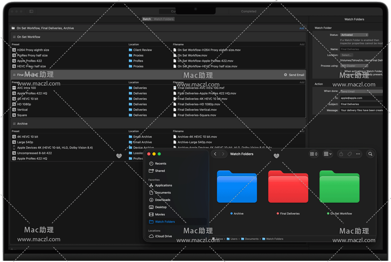 - 编码成各种符合行业标准的格式,包括 HEVC、MV-HEVC、H.264、MXF 和 ProRes