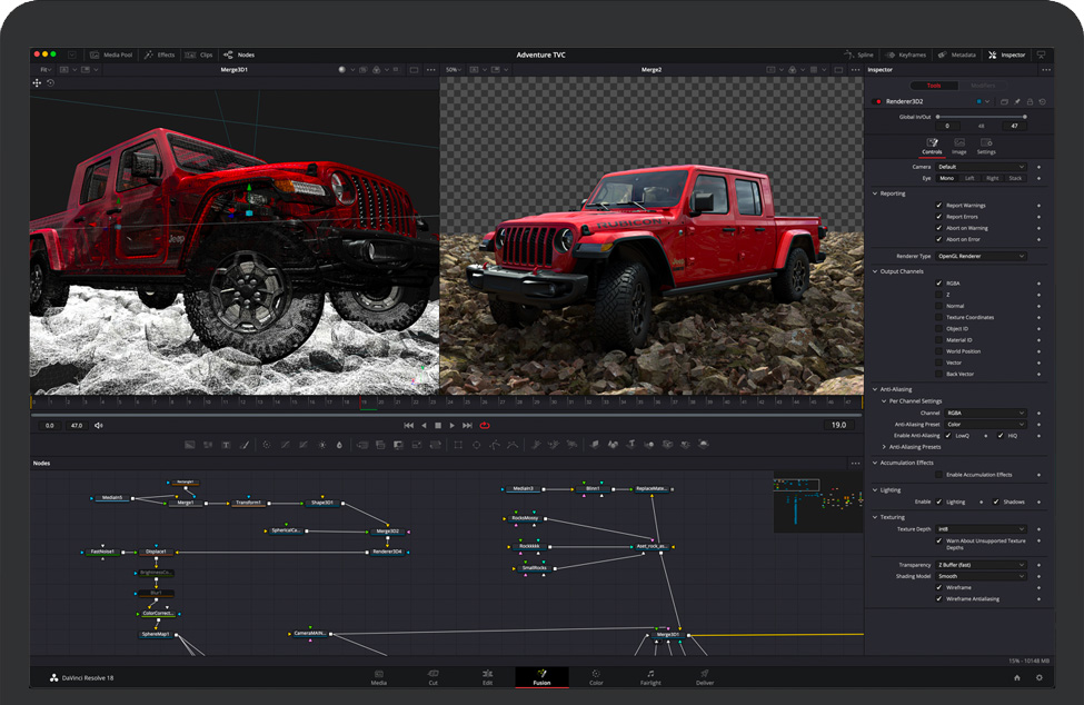Fusion 为您提供真正的 3D 工作空间,配备 250 多种工具,可创建电影级视觉特效和震撼的动态图形!DaVinci Resolve 20 新增深度图像合成工具集以及针对 OpenXR 和 PSD 文件的多层流水线。此外,还包含全新矢量变形工具集、支持 180 度 VR、3D 场景穹顶光以及原生 Cryptomatte 工作流。