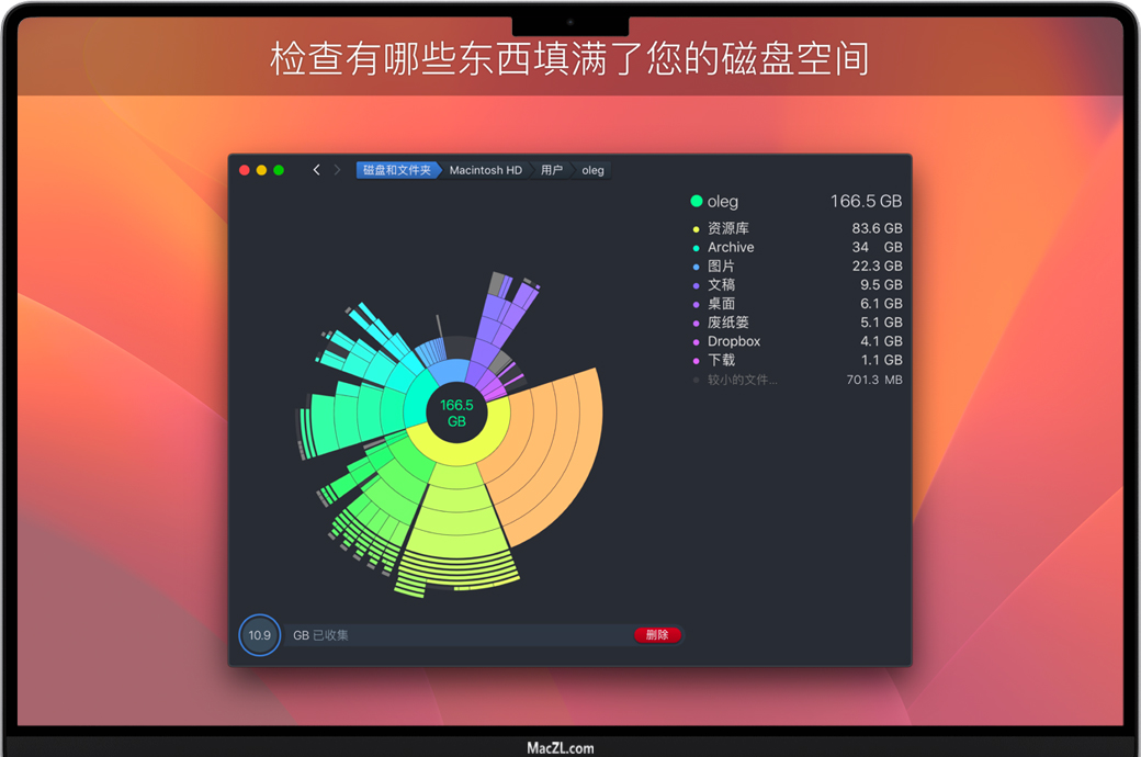 独特的界面设计,使得找出并删除无用且占空间的大文件比以往更加容易。