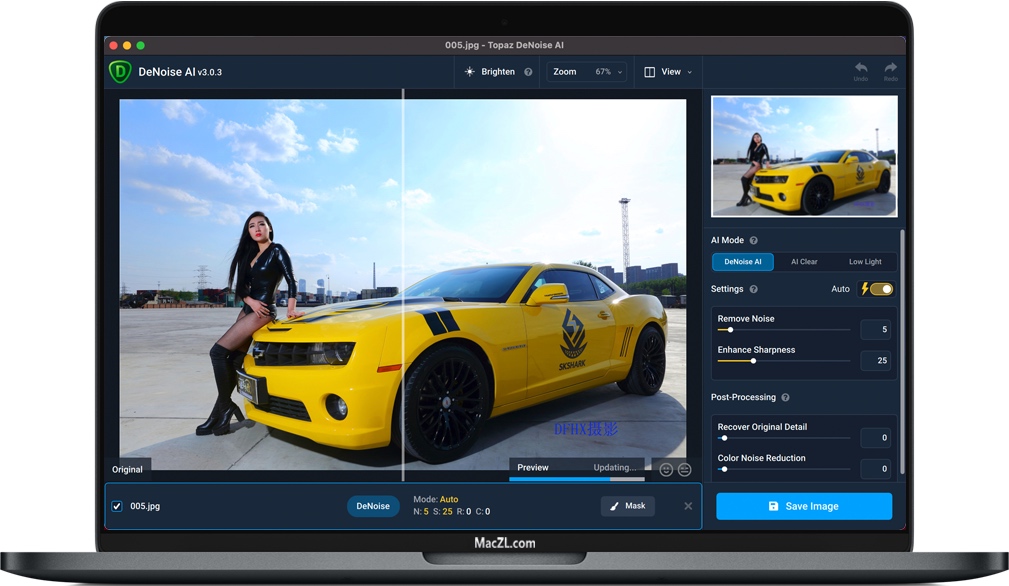 Topaz DeNoise AI for Mac 使用首个AI驱动的降噪软件消除噪点并恢复图像中的清晰细节。您可能会对获得的结果感到惊讶。Topaz DeNoise AI是真正意义上的AI人工智能驱动的降噪程序,DeNoise AI for Mac 可让您毫无保留地以任何光线拍摄任何地方。使用首个AI驱动的降噪软件消除噪点并恢复图像中的清晰细节。