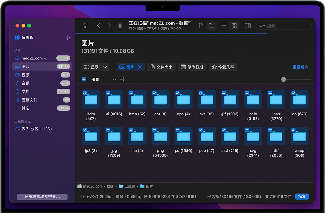 硬盘或者SD卡突然空白或者无法识别?你可能遇到了分区丢失的问题。数据仍在那里,但是Mac电脑需要找到数据的“地图”丢失了。如果它还在那里的话,Disk Drill可以让你恢复丢失的分区并找回你的数据。所有的可安装存储设备都支持。基于文件系统的各种恢复方法都可以使用,甚至格式化的驱动器都可以恢复。