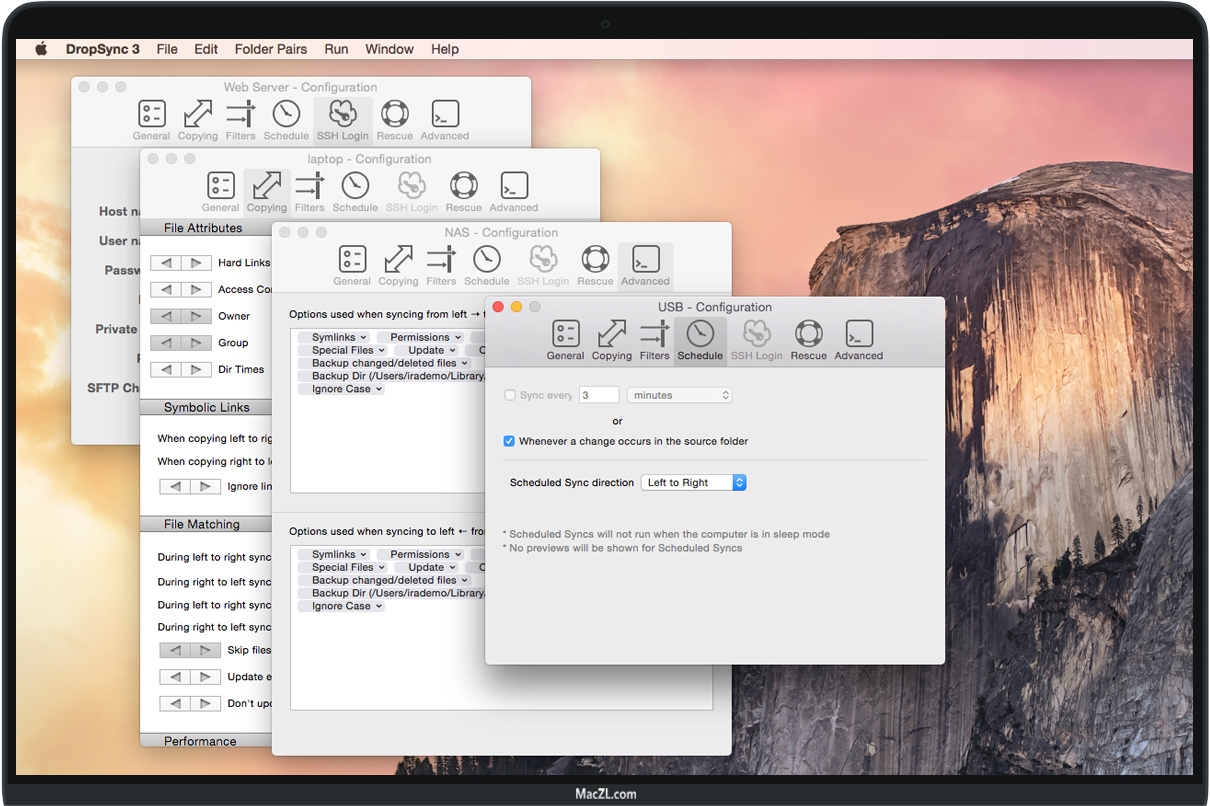 更好的设计在设计DropSync 3时,我们花了很长时间和精力思考如何使DropSync 2最棘手的方面变得简单。最终的结果是,对于新手和有经验的DropSync 2用户来说,界面应该是自然的。 DropSync 3特征电动浏览器只需单击即可轻松地并排比较文件夹和包含/排除子文件夹。无论您是通过SFTP浏览本地驱动器上的文件夹还是远程计算机上的文件夹,您都会看到相同的内容丰富的文件视图。 更少的复制速度更快DropSync在引擎盖下的使用远程同步只传输已更改的部分文件,因此通过网络进行更新特别快。我们一直致力于降低扫描时间和低内存使用率,因此在本地传输上也不会无精打采 监视文件夹是的。只需告诉DropSync监视文件夹的更改,它会在您工作时在后台更新 别挡道仅菜单栏模式允许您运行、配置和监视同步,而无需占用基座空间。 大量的期权轻松配置自定义筛选器以排除或包括某些文件类型,设置备份文件夹以存储覆盖或删除的文件,甚至自定义技术细节,如DropSync如何处理符号链接和权限 详细预览DropSync的预览确保您可以控制每个同步。查看每个文件将发生什么的完整详细信息,并通过按文件名搜索轻松导航大型预览 DropSync 3中新功能DropSync 3提供了一些大的改变和数百个小的改进,包括来自我们的优秀用户的许多建议。以下是一些亮点 更简单、更强大的浏览器