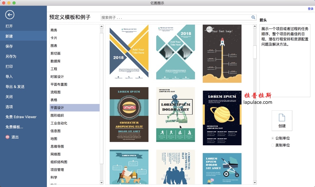 使用现成的符号和模板创建流程图,组织结构图,网络图,工程电路图,思维导图,房屋平面图,信息图等等。亿图图示(Edraw Max) for Mac多种多样的模板和强大的图库,提高您的工作效率,让您短时间就可以创建出各种高级图表。