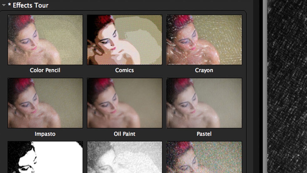 选择效果后,您可以使用导航器快速浏览预设,这是一个可立即更新的小预览。您甚至不必单击。只需将鼠标悬停在预设名称上,导航器就会显示效果在您的设计中的外观。