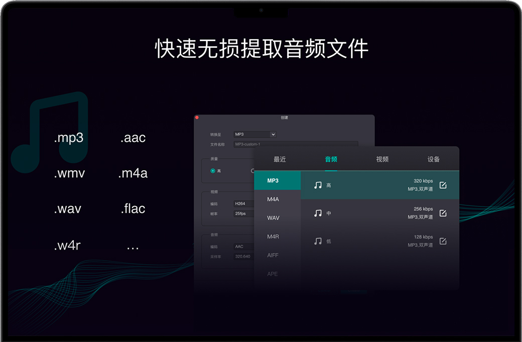 视频到音频转换器音频转MP3 / WAV / AAC / FLAC转换器视频编辑器-编辑视频多样的输出设置易于使用的视频转换器直观简洁的界面 直接拖放文件 自定义输出文件夹 一键转换和编辑文件