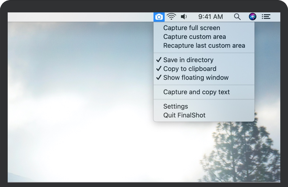 FinalShot for Mac 是一款菜单栏屏幕截图工具。只需要轻轻双击鼠标即可帮你截图;可以将您的屏幕截图保存到您选择的文件夹或将屏幕截图复制到剪贴板中,以便将其粘贴到任何其他应用程序!