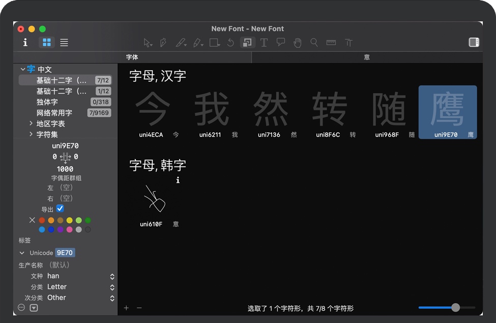 在 Mac 上创建、编辑和管理字体,在环境单词中设计字母造型