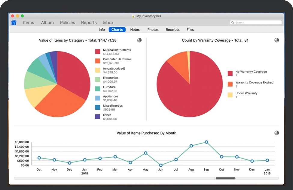 Home Inventory for Mac 是记录您的家和财物的终极程序,可用于通过计算机轻松存储、分类和管理您的所有资料。使用 Home Inventory 以数字方式管理您的家和财物成为可能,简单而有趣。使用此应用程序进行仓库盘点和家庭库存控制。不用说,这个编目应用程序特别适合管理各种收藏品。