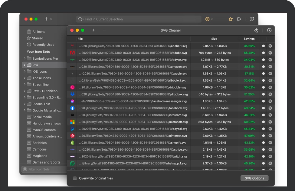 我们的应用程序现在为Finder中的上下文菜单提供了“使用IconJar清理SVG”之类的服务,以进一步增强您的工作流程。