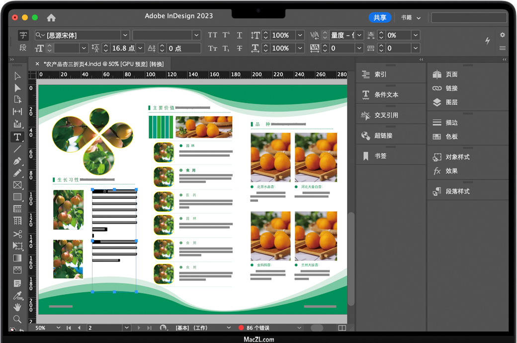 从信纸信封、传单、海报到宣传册、年度报告、杂志和书籍,设计无处不在。使用专业的版式和排版工具,您可以创建具有时尚的版式和丰富的图形、图像和表格的多栏页面。