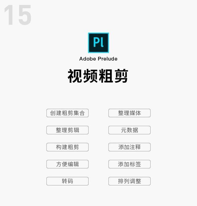 Adobe Prelude:也就是粗略的剪辑下,整理你需要的视频,构建下思路,在拿去Pr里面精剪。