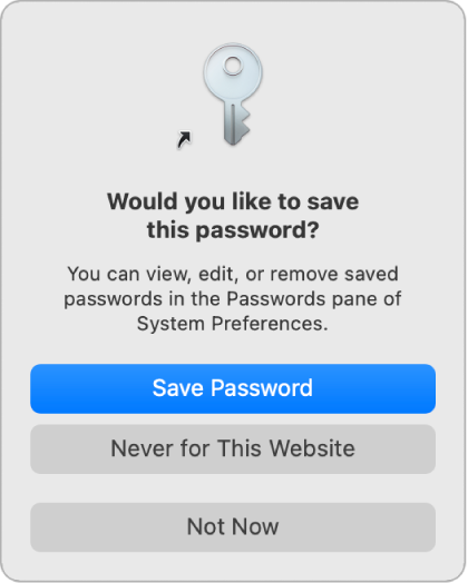 访问网站、电子邮件帐户、网络服务器或其他受密码保护的项目时,您可以选取记住密码或存储密码。如果您选取存储密码,它将会存储在您的钥匙串中,这样就可不必记住或每次都键入密码。