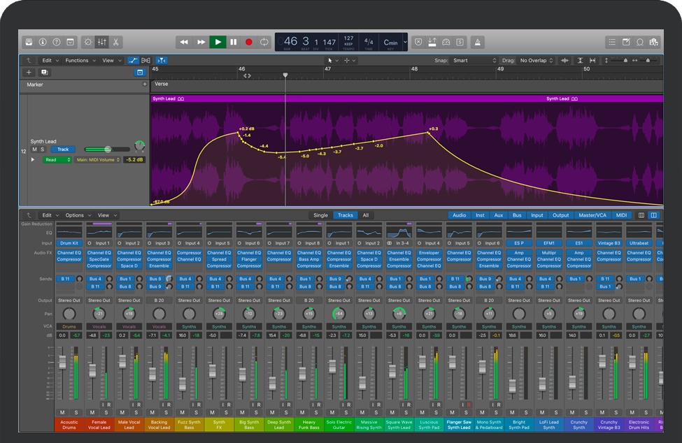 Logic Pro for Mac 是一款深受词曲作者和音乐制作人欢迎的Mac音乐制作软件。Logic Pro释放您的音乐创造力,并为您提供将您的想法转变为完全实现的专业音乐作品所需的所有工具。Logic Pro是用于专业歌曲创作、节拍制作、编辑和混音的复杂创意工具的完整集合,围绕现代界面构建,旨在快速获得结果并在需要时提供更多功能。Logic Pro包含大量乐器、效果、循环和样本,提供了一个完整的工具包来创作令人惊叹的音乐。