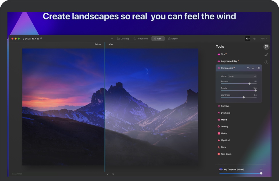 Luminar AI为您提供了内容感知模板建议,使您的照片焕然一新。从数十种模板集合中选择适合任何类型的摄影作品,以实现您的艺术眼光。