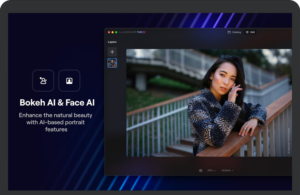 制定最后的笔画。带有人像散景AI,您可以在特定区域使用手动散景笔触编辑蒙版,微调最小细节的清晰度,或在需要时添加额外焦点。人像散景AI轻松满足任何创意要求:使用Luminar模糊背景并在您的照片中创建完美的散景效果AIAdobe Photoshop和 Adobe Lightroom Classi插件。