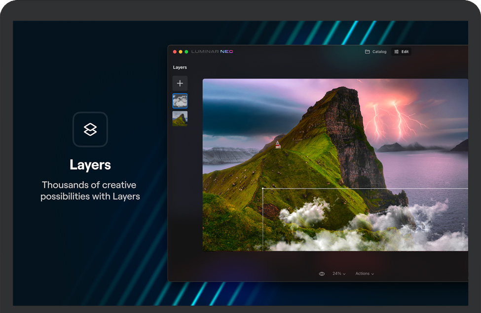 ![]() | 更多可能性创新技术为表达您的想法和获得专业品质的 Luminar 照片编辑器应用程序提供了一个全新的世界。 | ![]() |