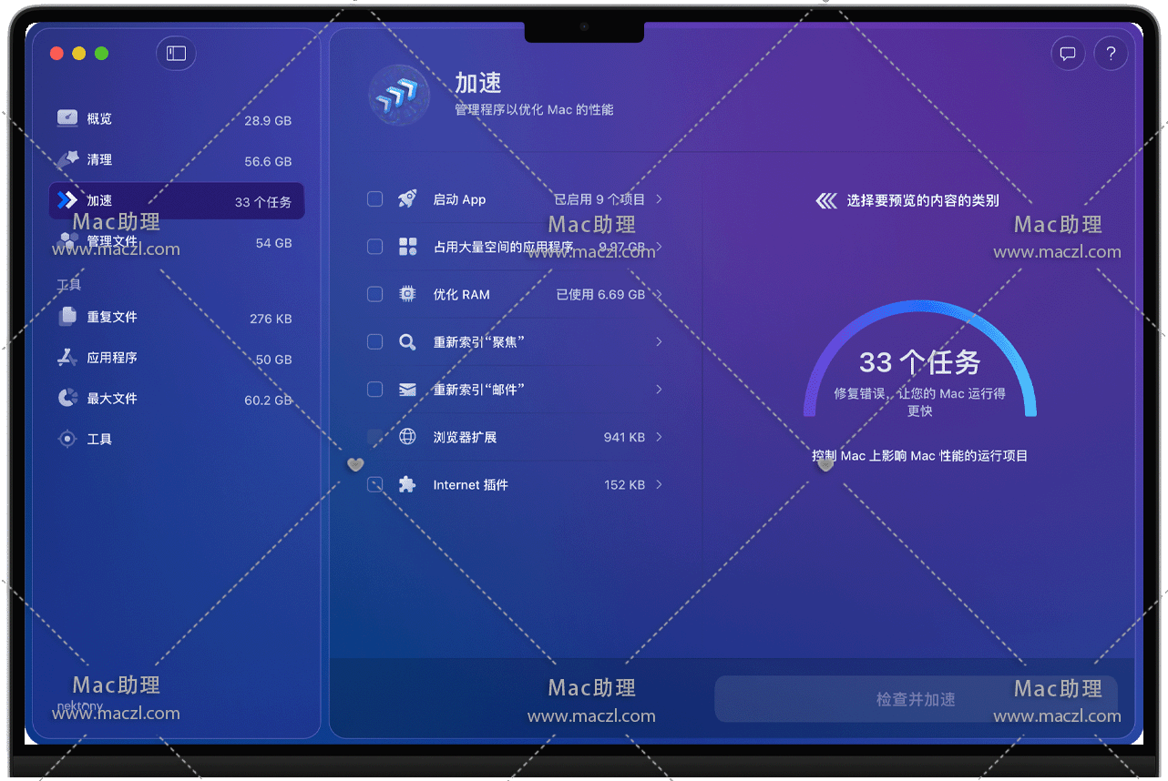 MacCleaner Pro for Mac是一款 Mac 专属系统优化工具,核心定位是通过专业工具 实现对 Mac 的深度清理、性能加速与磁盘空间管理,帮助用户保持设备流畅运行、释放冗余存储,适用于需要优化 Mac 性能或解决磁盘空间不足的用户。