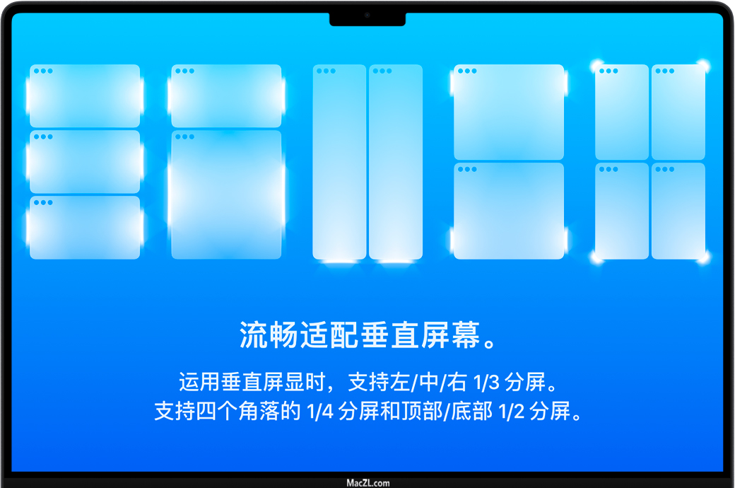 全屏,一半,四分之一和三分之一。最多支持六个外部显示器。潜在的组合是无穷无尽的。