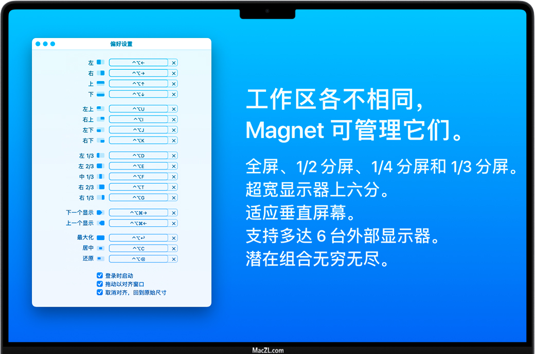 Magnet Pro支持macOS 10.13 或更高版本及更高版本,包括macOS Monterey 12.x。支持好视网膜显示器。