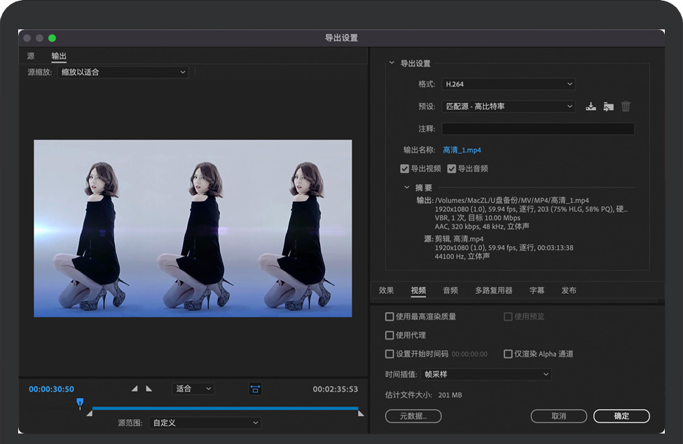 点击右上角的绿色箭头,视频将以指定的编解码器进行编码。