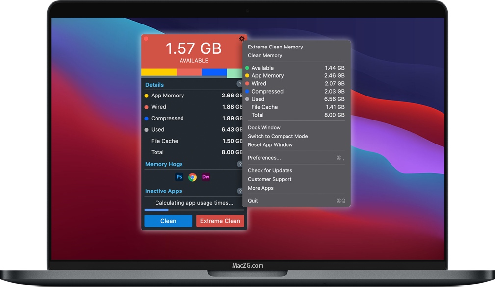 该应用程序通过清除Mac的非活动内存来工作,最好在关闭不再需要使用的内存占用应用程序后使用。通过释放不必要的内存,您可以为其他应用程序提供更多的可用内存。