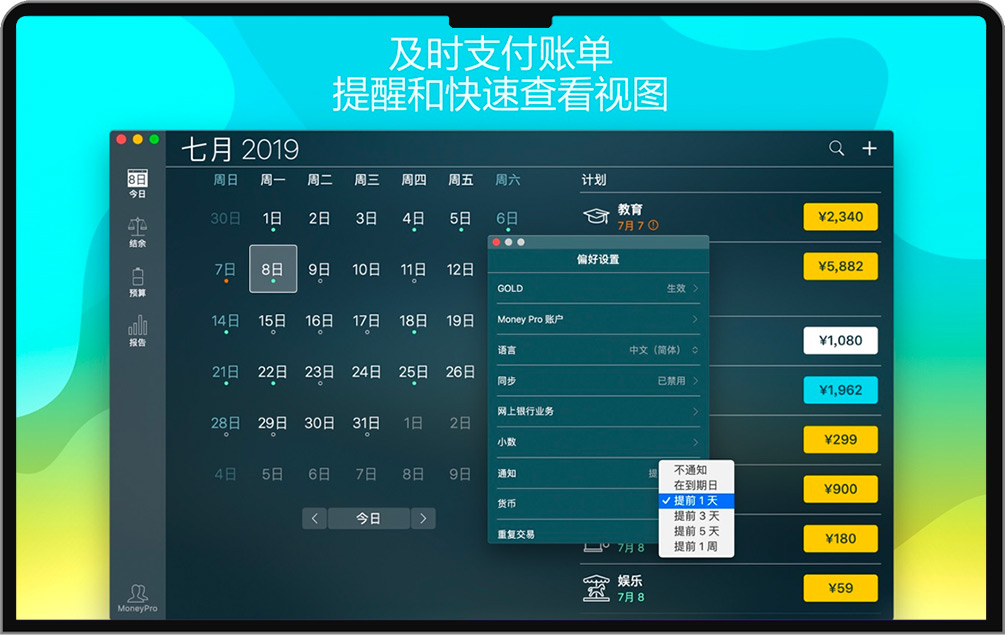 Money Pro for Mac 是一款功能强大、使用便捷的综合性个人财务管理应用。Money Pro是一套能够协同工作的工具,可用来追踪账户、管理账单以及制作预算。然而,它的用途远远不止如此,Money Pro最终的目的是给您提供一种能够让您掌控个人理财的手段,最终让您实现财务自由。