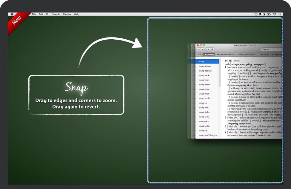 是否想将窗口快速移动并缩放到屏幕的某些区域?只需启用Moom的“贴边和拐角”功能即可。