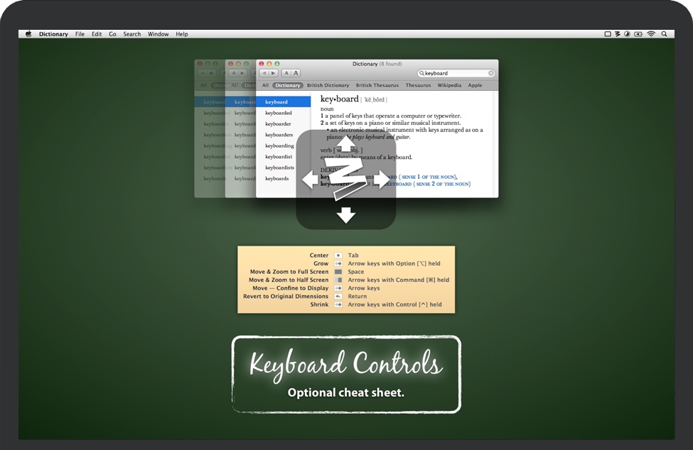 键盘用户,请放心,Moom不仅适用于喜欢使用鼠标的用户。启用键盘控制,您就可以移动,调整大小,居中,使用屏幕上的网格等等,所有这些都无需触摸鼠标。