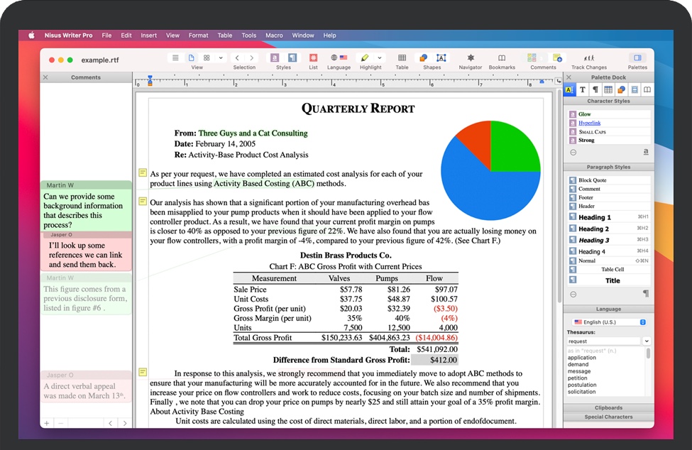 Nisus Writer Pro 是一款多功能、用户友好的文字处理器,无论是专业作家还是学生,都会发现它是不可或缺的写作工具。