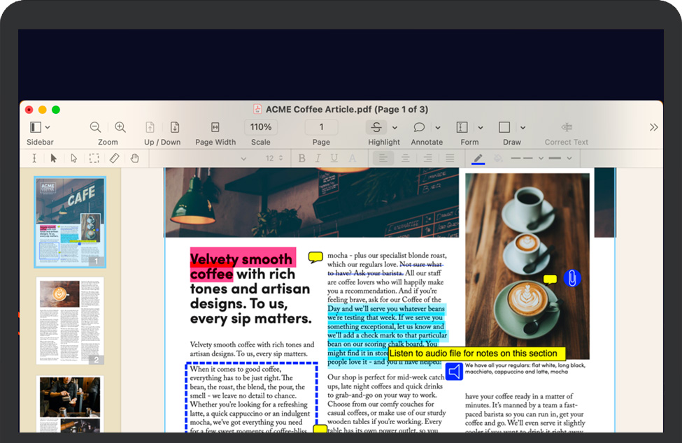 创建PDF从头开始创建PDF、合并PDF,或将任何类型的纸质或数字文件转换为完全可编辑的文档。 |