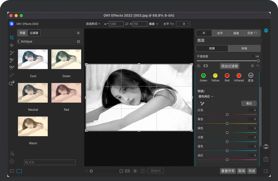 ON1策划了整个行业中数百种最流行的外观和风格。使用ON1 Effects 2022,您可以在几秒钟内获得专业的效果,而无需进行任何复杂的编辑。您可以在几秒钟内获得专业的效果,而无需进行任何复杂的编辑。我们的专家团队通过令人惊叹的全新一键式预设策划了最时尚的外观。ON1 Effects 2022可用作独立应用程序或用作Adobe Lightroom、Photoshop、Capture One、Affinity Photo和Corel PaintShop Pro的插件。