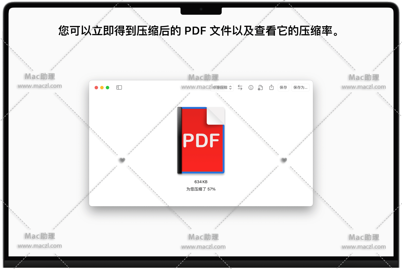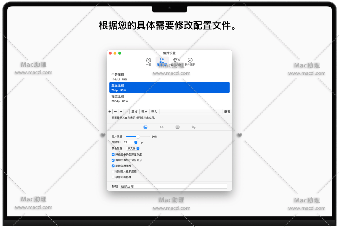 批量压缩多个文件。打开一堆文件或整个文件夹,然后观察文件如何缩小。该应用程序可轻松处理大量文件。