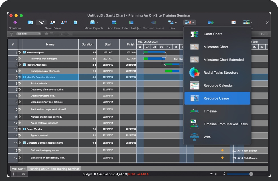 ConceptDraw PROJECT for Mac 是一款功能齐全的项目管理工具,可提供成功规划和执行项目所需的完整功能。支持的功能包括任务和资源管理、报告和变更控制。通过利用思维导图和数据可视化的强大功能,与其他ConceptDraw OFFICE产品的集成有助于改进项目管理。ConceptDraw PROJECT专注于可见性改进,并提供了一些新功能,可帮助专业人士更有效地可视化、维护和交流多个项目。
