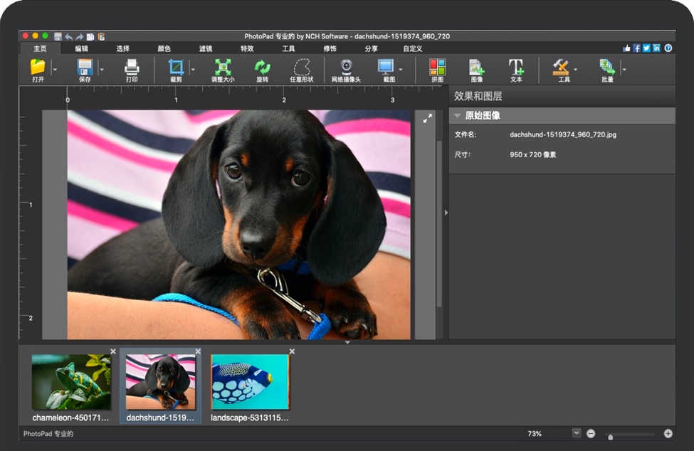 PhotoPad Professional for Mac 是一款数字照片/图像编辑软件。PhotoPad 界面简单明了却内含强大的编辑和效果功能集合,可提供专业的触感,让您创建令人惊艳的照片。PhotoPad是本世纪最稳定、最易用且功能最全面的照片编辑器之一,它具备所有强大的工具能满足各类人群的需要。