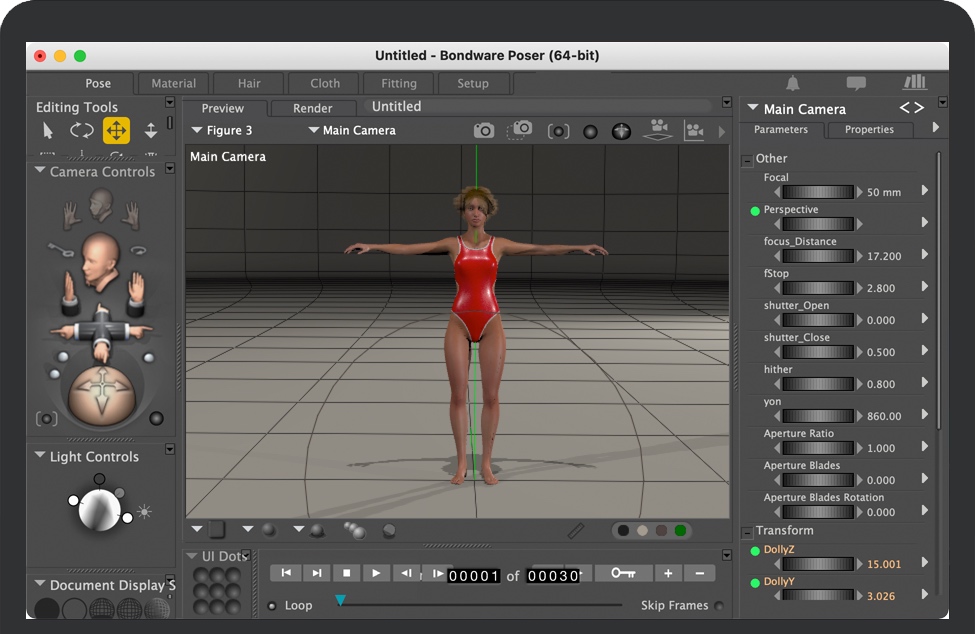 Poser 的动画工具可帮助您创建令人惊叹、逼真的动画,而无需执行人物动画制作过程中的大量重复工作。Poser 包括自动关键帧创建、非线性动画、口型同步和步行模拟器,以简化动画过程。