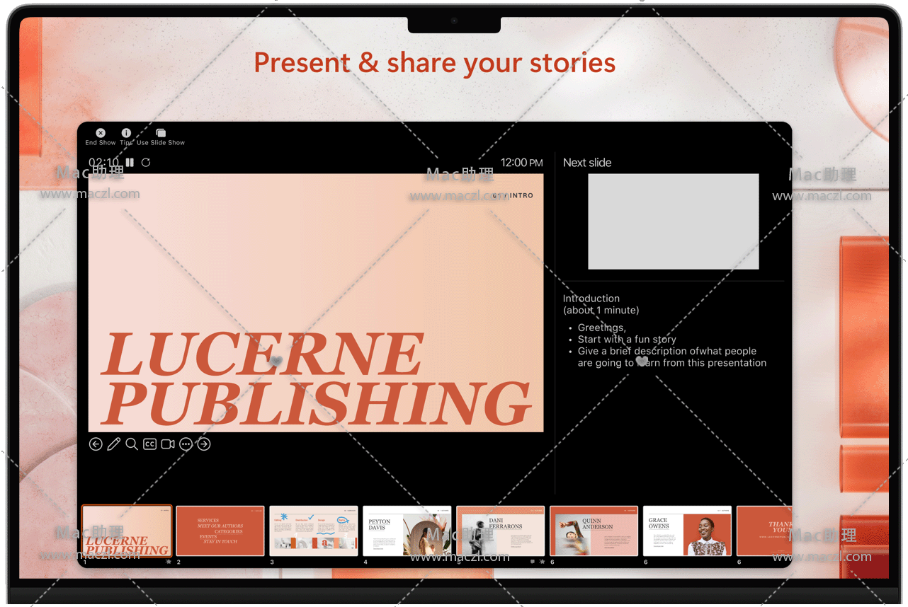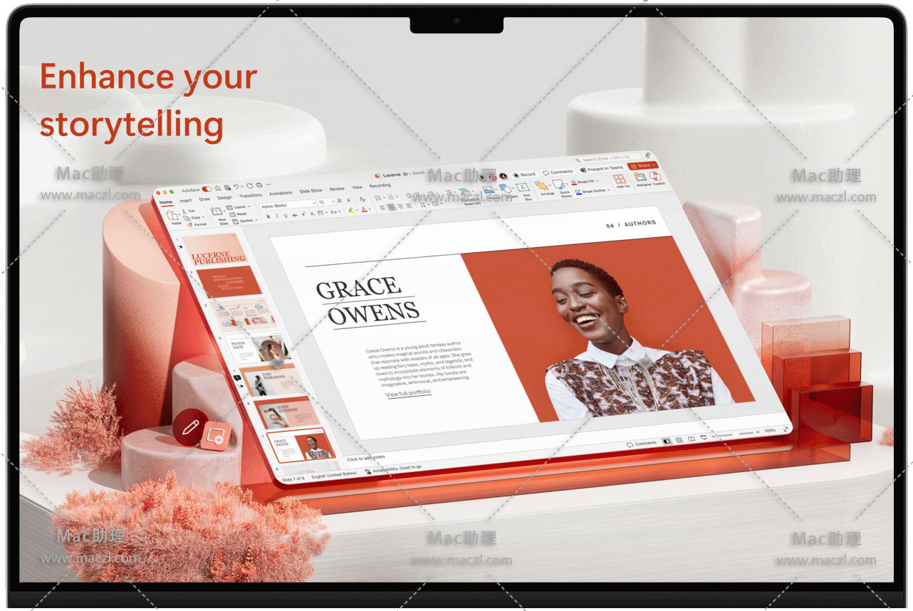 通过美妙的设计、丰富的动画效果、电影动态效果、3D 模型和图标呈现你的想法。