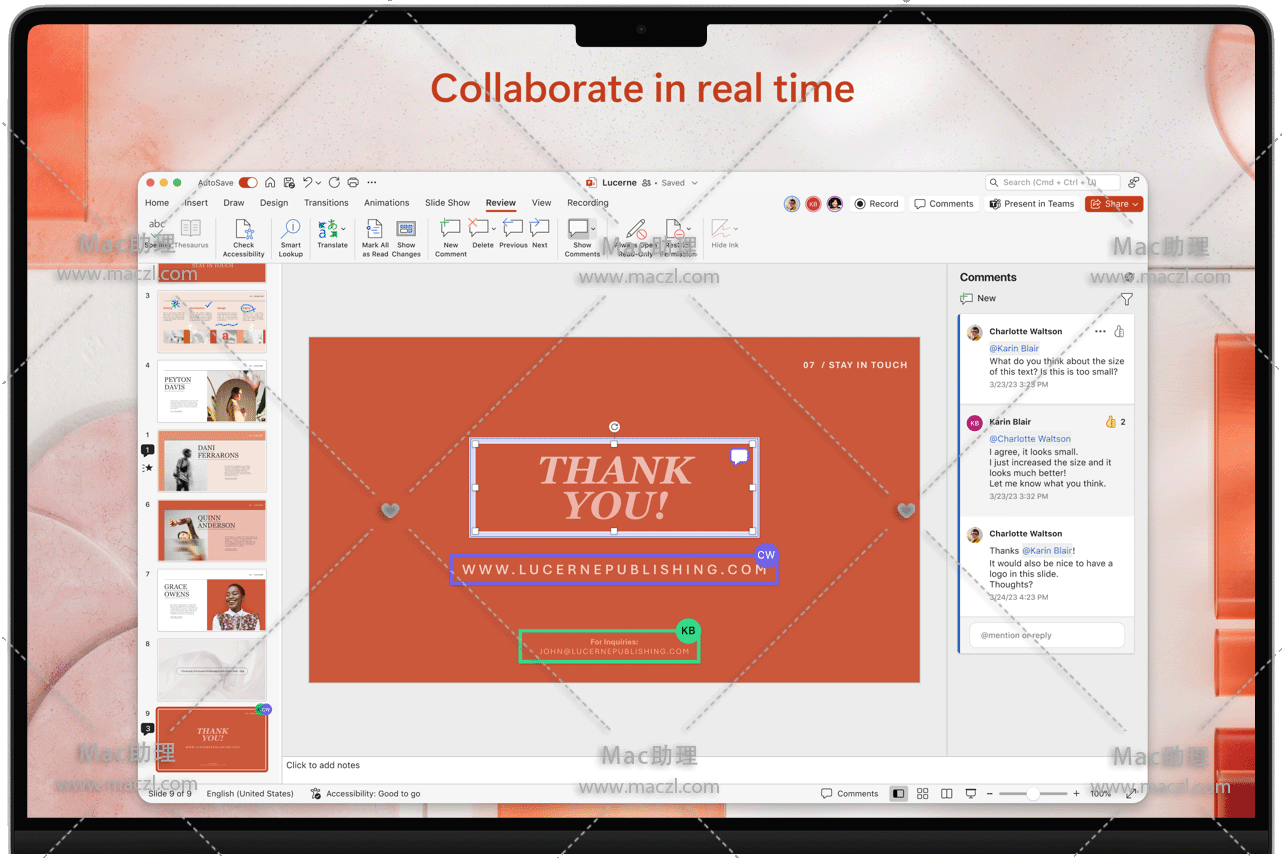 无论是要处理学校项目、销售推介还是家庭幻灯片,都可以通过实时共同创作与他人无缝协作来完成,通过这种方式可以更快速将自己的想法和计划整合起来。