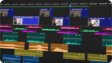 使用行业标准的视频编辑工具和节省时间的 AI 功能快速获得正确的剪辑。使用三点编辑完善您的叙述,或尝试基于文本的编辑来优化、重新排序和修剪剪辑,就像编辑文本文档一样。